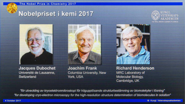 英国科学家理查德·亨德森、美国科学家约阿希姆·弗兰克、瑞士科学家雅克·杜博歇凭借在冷冻显微术领域的贡献而获得诺奖。