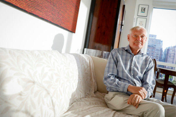 在纽约公寓内,阿希姆·弗兰克(右)与妻子拥抱