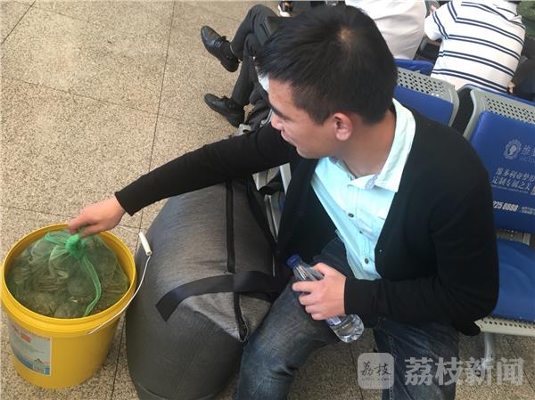 旅客甘先生说:“我老家是江苏淮安的,我家附近有个凌桥大米,我们自己家也种了。父母就说外面的大米,没有自家的好吃,带了有20斤的样子。在外面父母总觉得不放心,还带了很多水果,比如苹果、蜜枣。