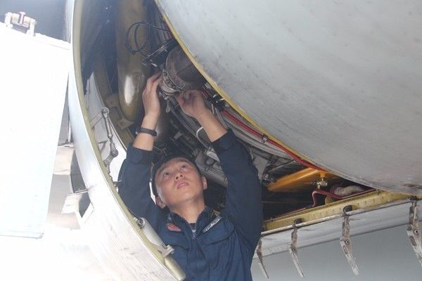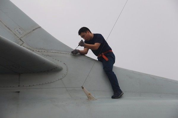 双节期间,东航某场站地勤官兵坚守战位,给心爱的战机换轮胎、上滑油、涂标记……他们战斗在无声的装备维护一线,只为战机随时飞上蓝天保卫祖国万里海空。