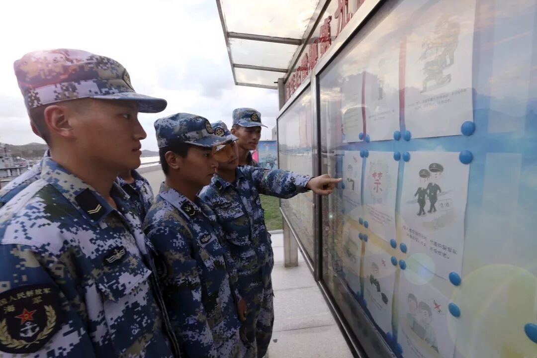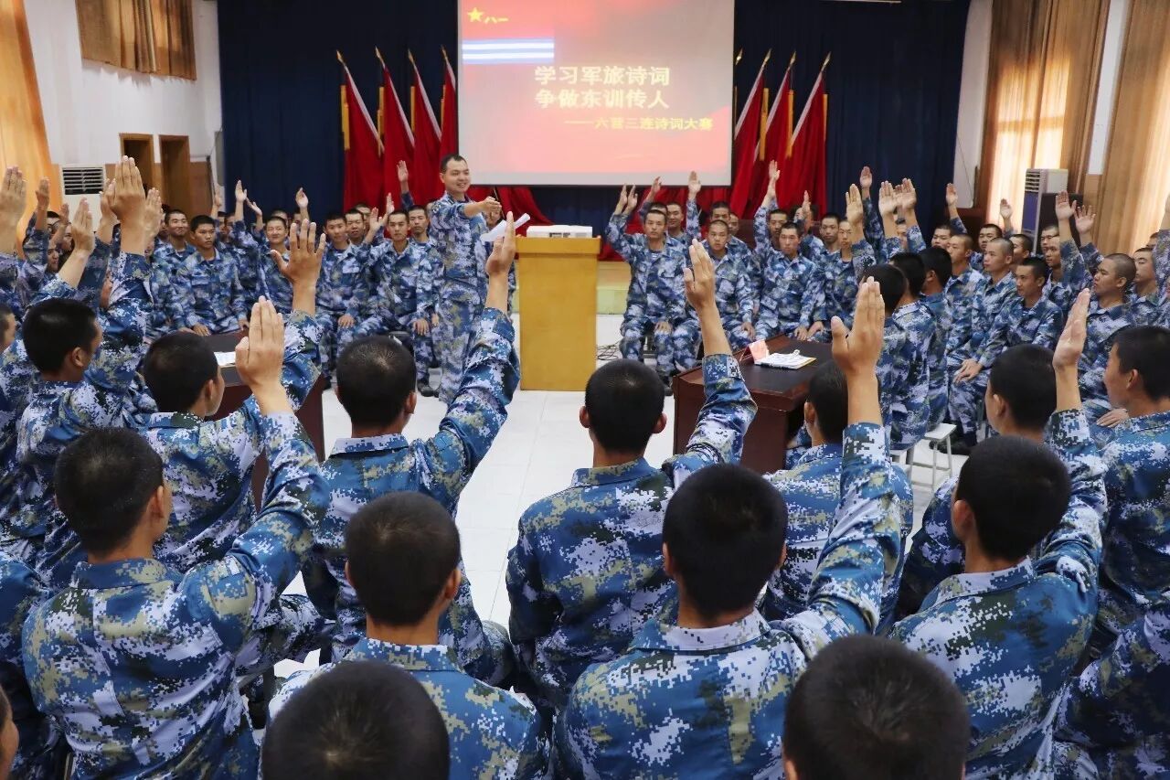 国庆中秋双节,东海舰队某训练基地因地制宜开展了升旗仪式、“兵妈妈”进军营庆中秋、联欢晚会、诗词大赛、写家书、给亲人送祝福等官兵喜闻乐见的文化活动。同时,该基地还结合新兵训练实际,组织开展趣味比武、拔河比赛、战备演练等比武练兵活动,培树新兵们的战斗精神,激发精武强能热情。