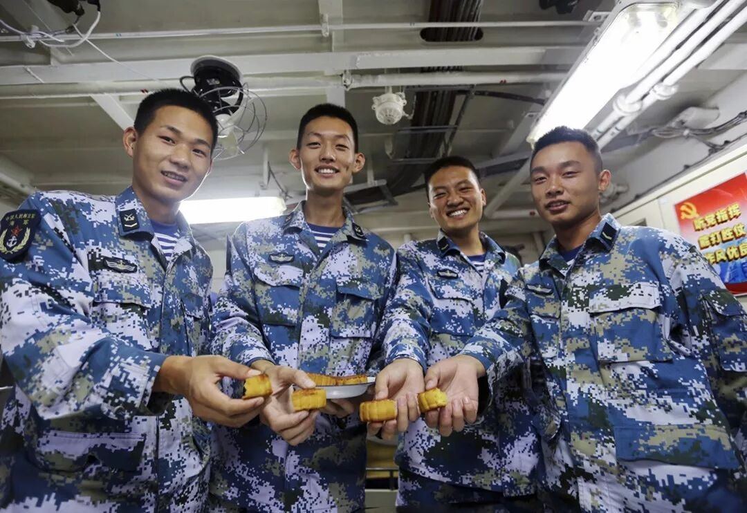 ▲在舰艇执勤,一份月圆的相思用一块月饼就能消化