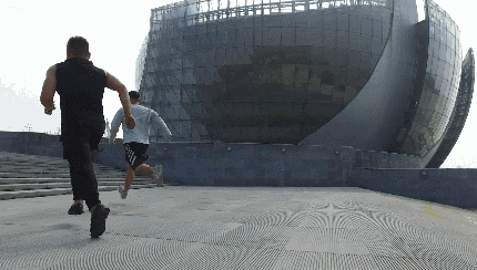 这个小伙叫尔东,是一名潮潮的“跑酷”爱好者。