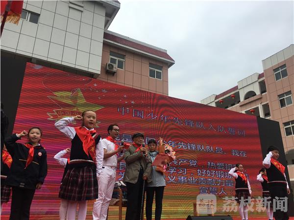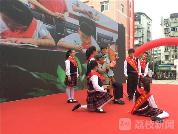 从石鼓路小学的中国鼓《龙拳》、怡馨花园小学京剧《梨花颂》,到瑞金北村小学的情景剧《单车“骑”遇》,小西湖小学的诗词传唱《爱我中华》,孩子们用自己的方式表达着如何做一名优秀的少先队员。曾在央视一套2016年《开学第一课》节目给全国学生上过课的秦华礼爷爷也来到现场。这位105岁高龄的通讯老兵坐着轮椅,在女儿的帮助下接受孩子们现场“提问”。秦爷爷讲述着自己和伙伴们在长征中“移动的通信学校”中克服各种困难、坚持学习无线电技术的故事。同时,也寄语少先队员。“学习没有东西,全靠我们自己动脑筋,纸就是地,铅笔就是树枝子。现在你们学习会遇到很多困难,遇到困难老师会引导你们,另一个你们自己要想办法,克服苦难,学习要有一种创新精神,希望我们同学要刻苦学习,学习科学文化知识,为祖国人民服务。”