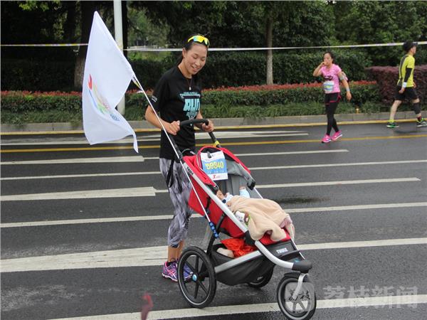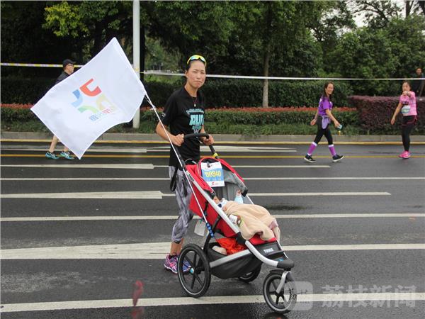 荔枝新闻网友在南京马拉松赛赛道上看到应该是这次比赛的最小参与者了----只有6个月大,一位年轻的母亲用婴儿车推着她出生六个月的孩子参加半程马拉松赛跑,这样的举动受到两边道路上观众和赛道上运动员们的点赞祝福。