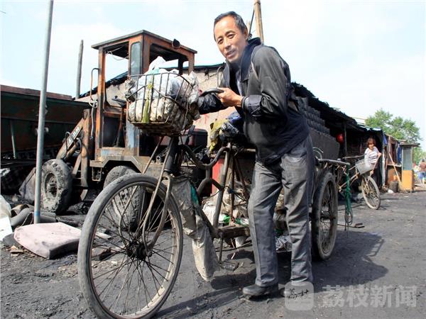 今日,荔枝新闻网友在现场看见,煤场的小棚子里,打煤咣当咣当机器声不停地传来。机器旁站着两三个忙碌着的打煤人,一人挥动着铁锹,将堆积的煤渣铲到机器里,一个个完整的蜂窝煤就从传输带上出来了。另一个人快速地将蜂窝搬起,整整齐齐地摆放到停靠在旁边的三轮车上。在这个小小的加工棚里,每天有五户卖煤人到这来加工煤,然后拉出去走街串巷吆喝卖。 据姚师傅称,随着老下关地区老房屋及大棚区拆迁改造,居民搬进高楼大厦居住,他们这个干了20多年的传统行业或将悄悄地消失南京城,他们这些打煤人也将会改行。