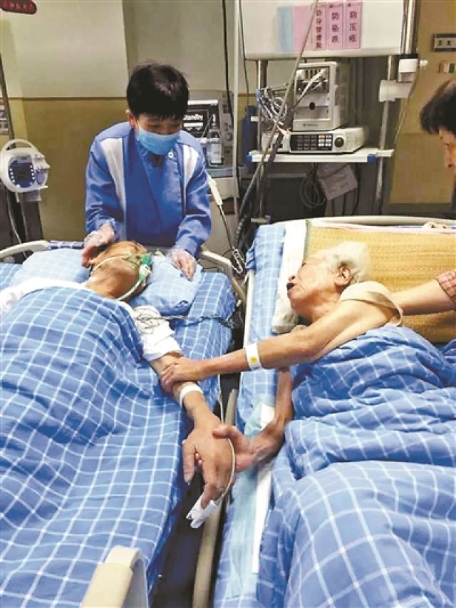 “两位老人所在的病房一个在3层,一个在14层,考虑到这可能是两位老人的最后一次见面,我们破例让两位老人在病床上见了一面。”宁波鄞州人民医院重症监护室护士长王艳芳说,“两位老人都躺在病床上,我们推着他们的病床让他们靠在了一起,看到了老伴儿,张萍老人一下子拉住了冯爷爷的手,嘱咐他照顾好自己,说等到自己养好了,就回家去看他,当时冯爷爷已经没有太多力气,只是默默地点点头,看到这样的场面,我们医生护士也都挺受感动的。”