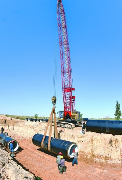 正在紧张施工的陕甘宁盐环定扬黄工程更新改造项目是革命老区的一项脱贫工程。光明日报记者 王建宏摄/光明图片