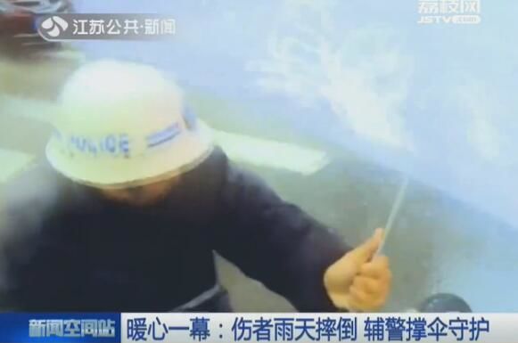苏州湖西交警中队辅警王家东见状,赶忙跑到了这位女子身边,打伞遮雨,以免她着凉感冒。就这样,王家东冒着雨一直陪伴着伤者,直到救护车赶到了,把受伤女子送上了车。