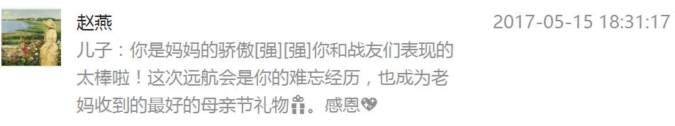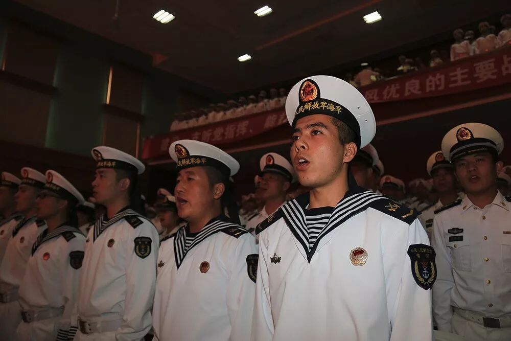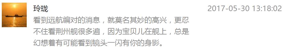 时移世易,今天,远航的水兵,舰舷畔不再漂浮屈辱的泡沫,而是激荡着光荣与梦想的浪花;远航的水兵,海魂衫上张满深蓝的风,军旗上飞扬大国强军梦。