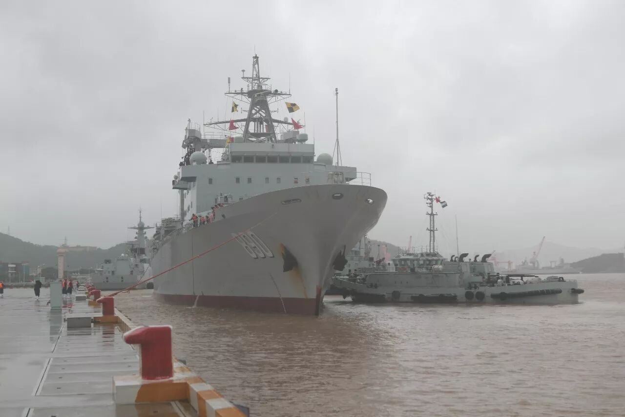 海军参谋长助理许海华,东海舰队政治委员王华勇、纪委书记王仁华、政治工作部主任李道明、保障部部长王东凯,长春市、荆州市、舟山市、巢湖市领导以及部分官兵和家属代表到码头迎接。