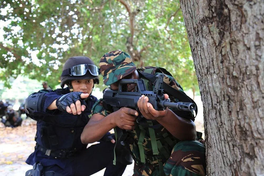 ▲编队特战队员指导坦桑尼亚陆战队员训练