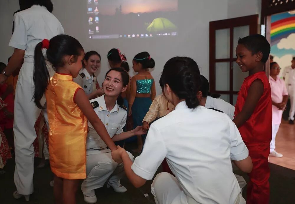 ▲海军官兵与斯里兰卡小朋友一起过国际六一儿童节