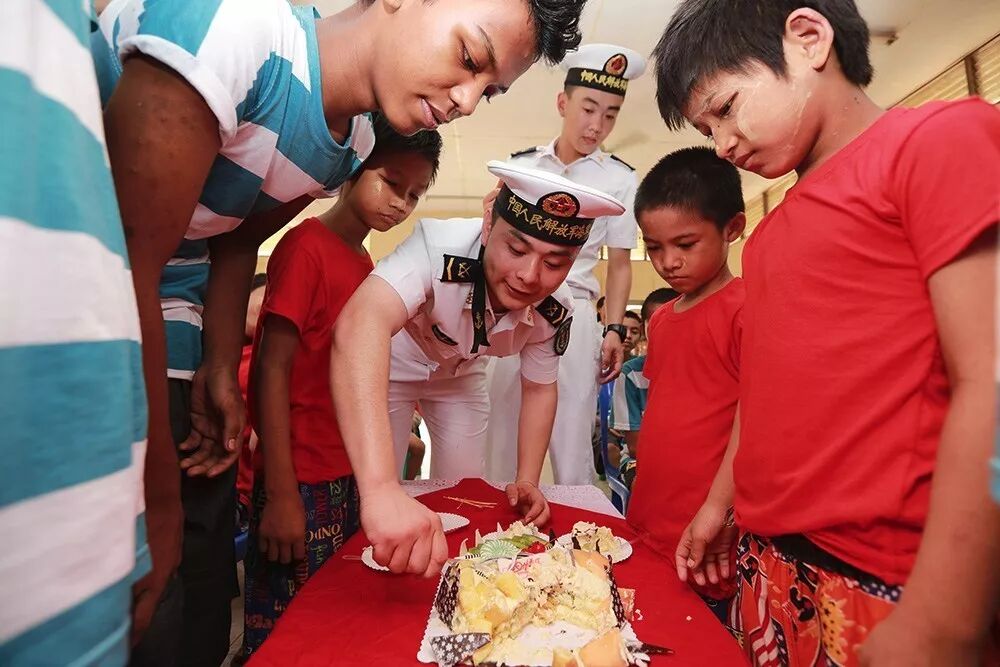 ▲编队官兵为缅甸孤儿院的小朋友们过生日