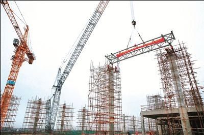 南通兴东国际机场新候机楼“上梁”啦!10月19日(昨天)上午,一根长15米、重6吨多的钢桁架被大型起重机稳稳吊装在了南通机场新候机楼二层出发大厅的两根钢筋混凝土立柱上,这标志着该机场航站区改扩建工程已进入钢结构吊装阶段。
