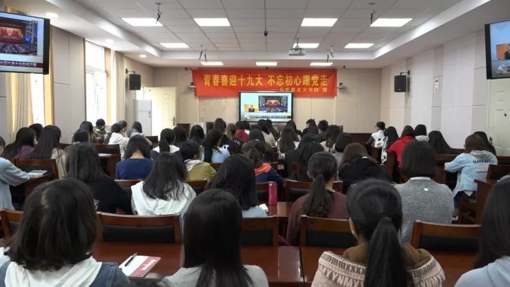 大学生汪思敏说,十九大的召开是一个伟大的时刻,伟大的时代需要伟大的理论引导,作为马克思主义学院的学生,他将学习好、研究好、宣传好、贯彻好十九大精神。