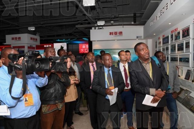 10月18日,外国记者们在利亚德光电集团参观。当天,80多名中外记者走进北京中关村科技园,亲身体验中国在LED显示、VR互动、3D屏幕、舞台设计等领域的最新成果。(新华社记者陈晔华摄)