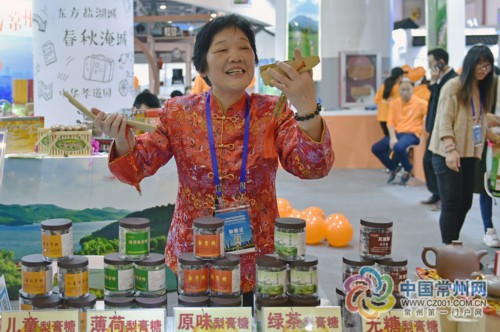展会期间主要展示了常州非遗特产,如常州大麻糕、梨膏糖、芝麻糖等;溧阳特产,如休闲鱼礼盒、小王子香肠、菌菇酱、剁椒鱼头等;金坛特产,如金坛蛋雕、金坛刻纸、金坛封缸酒、金坛雀舌、茅山青峰、茅山保朴园圣水杯、金坛红红茶等;文创产品,玉陶壶等;以及景区创意衍生产品,如天宁宝塔的镇纸知足常乐、车镇小宝塔等;淹城春秋乐园的倒流香、文房四宝、青瓷快客杯等;中华恐龙园的卡通公仔;环球动漫嬉戏谷的嬉戏公主手伴、囧囧狗公仔、动漫面具、囧囧狗PU拉杆箱等等商品。