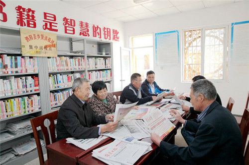 设立在村组中的“农家书屋”也是“乡贤读报团”宣传党的路线方针政策的重要“阵地”。在“乡贤读报团”的引导下,聚到这里的村民悠闲地看看报纸杂志、聊聊生产生活,不仅加强了联系,交流了情感,而且更新了思想观念,增长了新的知识。由于十九大的召开,在来安街道戎宏宽的“农家书屋”里,来这里读书看报的人特别多。20日这天,戎宏宽从一大早就忙碌了起来,擦桌扫地,将各类报刊进行归类整理等,跑里跑外不住手不住脚。“十九大召开了,大家都关心着国家大事,都想多了解新的方针政策,我这里自然就更加‘吃香’了,我又是‘乡贤读报团’的成员,必须要服务好!”戎宏宽开心地说。随后,戎宏宽和村民们坐到一起,认真阅读刊有十九大报道内容的报纸,并且热烈地探讨起来。