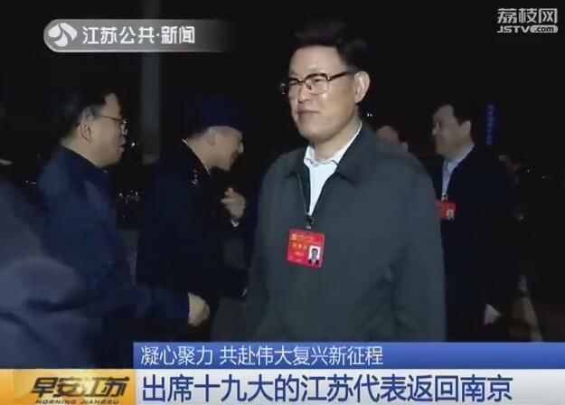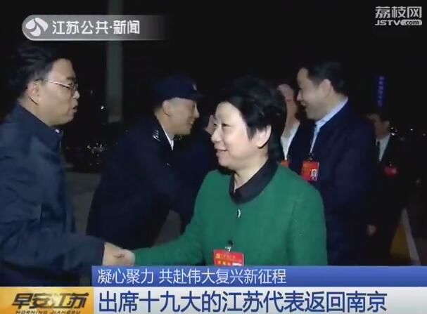 10月25日,出席中国共产党第十九次全国代表大会的江苏代表,在圆满完成大会的各项议程之后,回到南京。