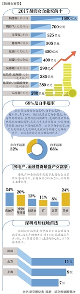 从女企业家榜的行业分布看,房地产、金融投资、制造业,是最“盛产”女富豪的领域。在2017年,各行业诞生的女富豪数量分别占到24%、20%和13%。