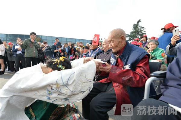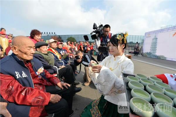 今天在大报恩寺遗址公园里,一场重阳古礼,让大家再一次感受传统文化的深厚魅力。敬老礼,就是众人向老人行敬老之礼。先后经过盥洗—洁具—酌酒—拜请—献酒—佐乐等礼仪。还有很多民俗活动。