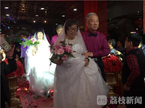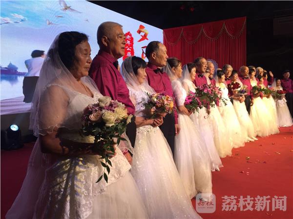 重阳送爱心,情暖夕阳红。今天(10月28日)晚上,华灯初上,在盐城市杨侍生态园里张灯结彩,喜气洋洋。17对金婚、银婚老人在这里举行“夕阳红”集体婚礼,老爷爷们穿着西服、结着领带,搀着身穿婚纱的老奶奶,在众多亲友来宾的祝福中健步走向舞台。“没想到爸爸妈妈这么认真,这么光彩夺目!给他们补上一个婚礼,也算是弥补了过去贫困时代的遗憾。”一位中年女士感慨地说。