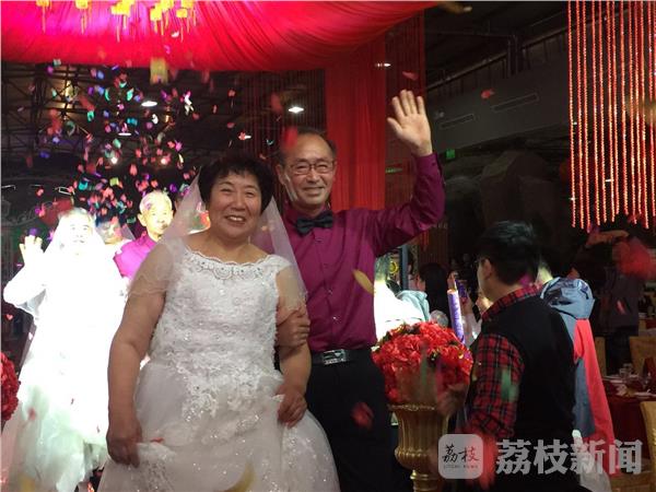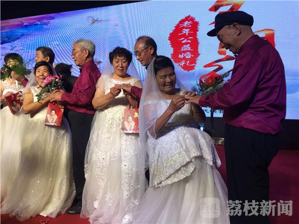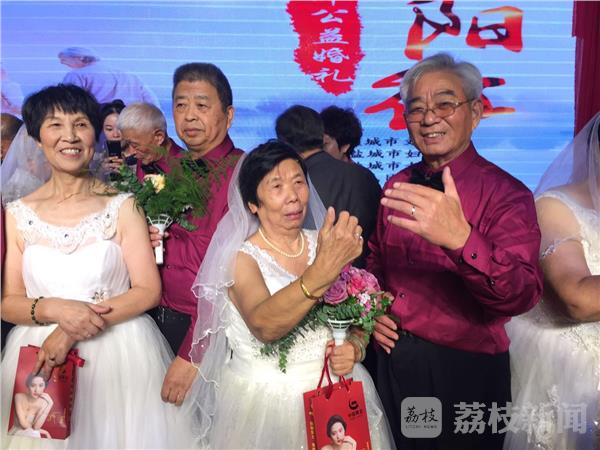 据介绍,这次盐城市首届“夕阳红”老年公益婚礼是由盐城市文明办、市妇联、市老龄协会联合主办。参加公益集体婚礼的17对老人,是由各地各部门积极推荐,众多老年伉俪踊跃报名,最终通过网络投票的方式精心挑选确定的。他们中有被誉为“知识青年榜样”的董加耕夫妇,有获得全国“五一劳动奖章”的贺寿光夫妇,有省非物质文化遗产传承人许进城夫妇,有上海世博会获奖农民画家王复军夫妇等。