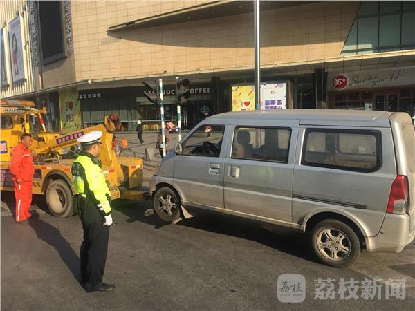 2017年10月31日,南京交警十大队民警在辖区巡逻时发现银色面包车要从辅道并线,进入主道。透过车窗,民警隐约看到车厢内黑乎乎一片,发现车内异样后,紧随其后将这辆七座面包车拦停。