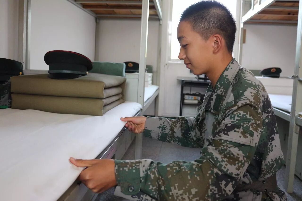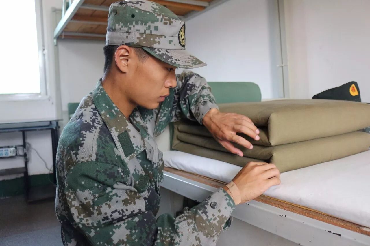追星之路:入伍以前是个不折不扣的宅男,从来不会这么去收拾房间,自从来到军营,一个多月,不仅大变样,人也精神了不少,一点一点学习,利用课余时间整理内务,提高很快,受到战友们一致好评。