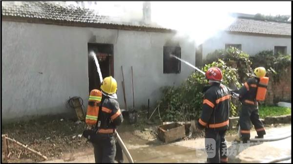 10月31日中午1点30分左右,扬州市江都区长江东路附近村庄内一民房发生火灾,且屋内有一瓶煤气罐,如不及时处置,后果不堪设想。
