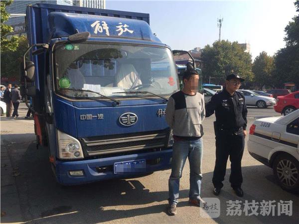 10月31日上午10点,南京交警三大队民警刘健在中山南路集庆路路口执勤时,发现一辆蓝色厢式货车沿中山南路由北向南行驶,形迹可疑,随即上前将该车拦下检查。