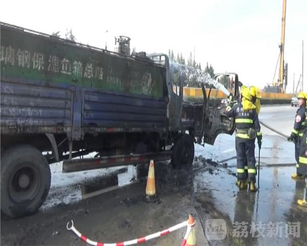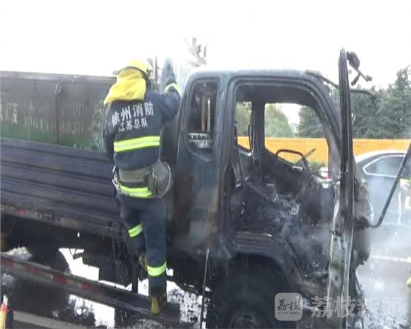 事后询问司机得知:这辆车是来徐州拉鱼的,车上的氧气罐是用来给鱼箱中的鱼供氧用的,车开着开着就起了火,司机赶忙停下报警。具体起火原因还在调查。
