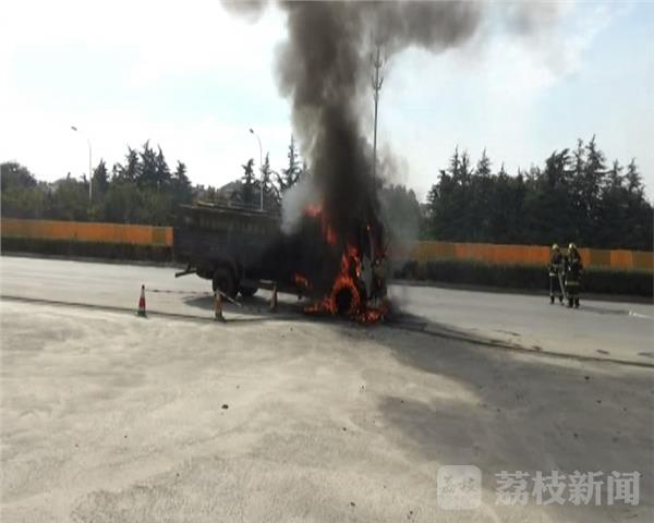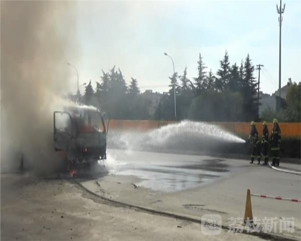 10月31日中午12时01分,位于徐州市云龙区人力资源部中心门口一辆行驶中的货车突然起火燃烧。徐州消防支队新城中队立即赶赴现场进行扑救,隔着老远就能看到滚滚的浓烟。