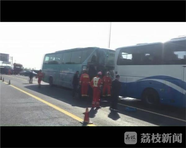 事故发生后,沪宁高速新区出口方向路段,出现严重拥堵,消防队员赶到后第一时间拉起警戒线,维持现场秩序。经现场初步排查,除一名司机被困驾驶室外,其他受伤乘客大多为皮外伤,伤情并不严重。消防队员立即将五十余名乘客,转移到了安全区域。消防员尝试用液压钳等工具进行破拆,无奈车头变形严重,担心强拆会加重驾驶员伤情,救援一时陷入僵局,商讨之下,调来一辆拖车协助救援。