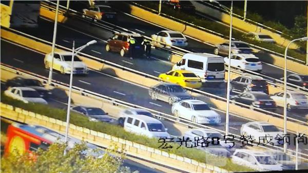在长长的匝道上,两人一步一个脚印,推行了约三四百米,终于将车子推到了前方导流线上。在确保车辆安全不影响交通后,两人又绕回后方七里街岗疏导车流,指挥车辆快速通过。仅用了不到十分钟,一场影响道路通行的抛锚事故便得到解除,道路逐渐恢复正常。