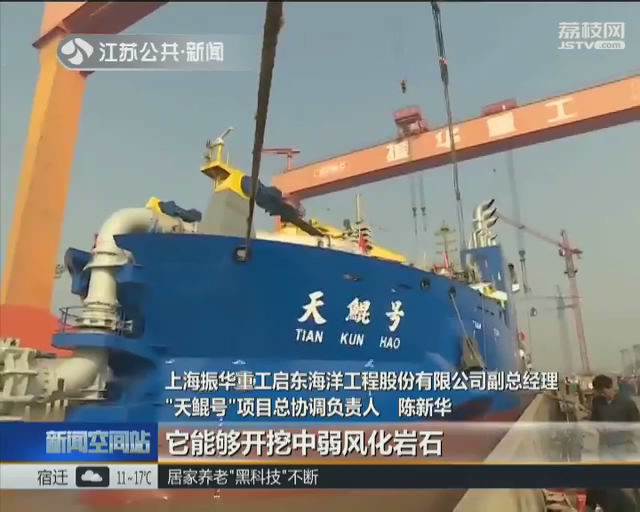 上海振华重工启东海洋工程股份有限公司副总经理、“天鲲号”项目总协调负责人陈新华介绍,“天鲲号”能够开挖中弱风化岩石,抗压强度50兆帕以内的岩石;它的排距也是世界最大的,能够排压15公里。