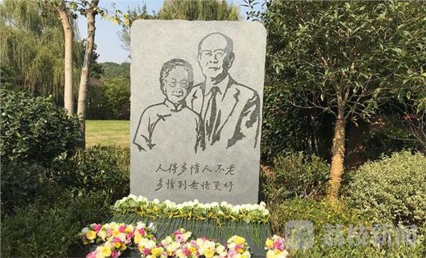 昨天(11月2日)上午,周有光夫妇雕像在常州栖凤山名人园揭幕。雕像石碑高1.73米,宽1.07米,厚18厘米,依据二人合照以线刻工艺呈现于花岗岩石碑上,像下拓自周有光夫妇的亲笔手书“人得多情人不老,多情到老情更好”。前半句由周有光书写,后半句由张允和书写。据了解,这句诗原由张允和献给俞平伯伉俪贺寿。