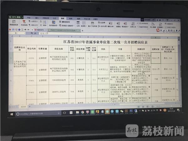 南京某培训机构辅导老师王融:“从今天上午九点到现在,竞争最激烈的岗位,就是省政务服务网运管中心的,综合文字岗位,这个岗位专业不限,而且本科及以上都可以报名,虽然在备注中说明了需要加班的,但是因为招录进去以后,是副科级这样一个职位,(截至下午3点)有29人审核成功,有220人处于待审核状态。”