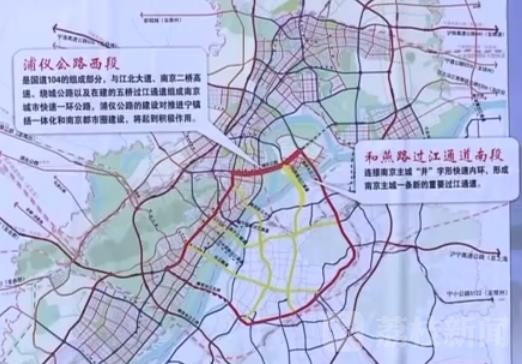 南京浦仪公路西段工程则起于104国道与205国道交叉处的浦泗立交,往东全程高架,在上坝跨越长江夹江,经八卦洲,与和燕路过江通道交叉,止于八卦洲二桥高速枢纽,全长约11.5公里。其中主桥为跨径500米的双塔独柱钢箱梁斜拉桥,按双向六车道一级公路标准设计。核批工期为4年。