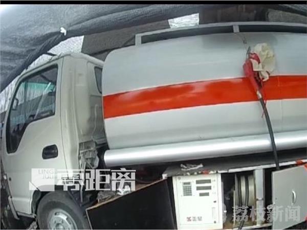 南京江宁公安分局岔路派出所民警 孟坤鹏:“一辆油罐车就在黑色的棚子底下,有一套加油装置就在这个油罐车上。那边还有两辆油罐车。这两辆油罐车都是满的,都是装的汽油。”
