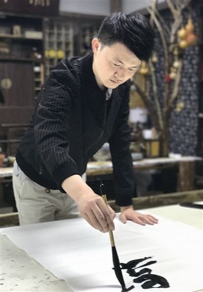 谈到得知这一消息时,黄鑫直言很是意外。“在看征稿启事的时候心里就在嘀咕,全国那么多高手,而入选人数那么少。”黄鑫说,其实,自己曾经参加过上一届书法兰亭奖,只是最终并没有入选,这一次也只是抱着试试看的心态,投出了大草、行书对联和小章草三件作品。