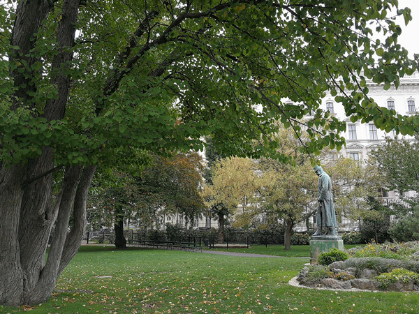 斐迪南一世没有子嗣,他的后继者侄儿弗朗茨•约瑟夫一世(Franz Josef I), 一身戎装站在东侧王宫庭院一角的草坪中,然而因为莫扎特的铜像也在这个庭院里,没有多少人会走到皇帝跟前。弗朗茨一世在位68年,比康熙和乾隆都长,一生都在努力扶持大厦将倾的帝国,但在奥地利以外的地方,他的名声恐怕远远比不上妻子——伊丽莎白王后——人们更喜欢叫她的芳名“茜茜公主”。