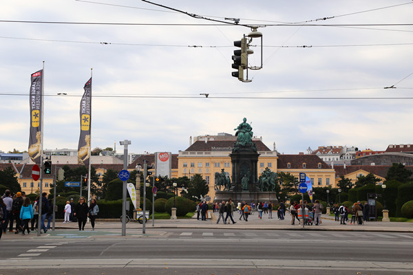 维也纳博物馆区广场,中央有特蕾西亚皇后铜像