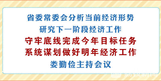 荔枝新闻讯 11月14日,江苏省委常委会召开会议,分析当前经济形势,研究下一阶段经济工作。会议强调,要以习近平新时代中国特色社会主义思想为指导,认真贯彻党的十九大关于经济工作的新部署新要求,继续坚持稳中求进工作总基调,守牢各项工作底线,努力完成全年目标任务,系统谋划明年和今后一个时期的经济工作。省委书记娄勤俭主持会议。