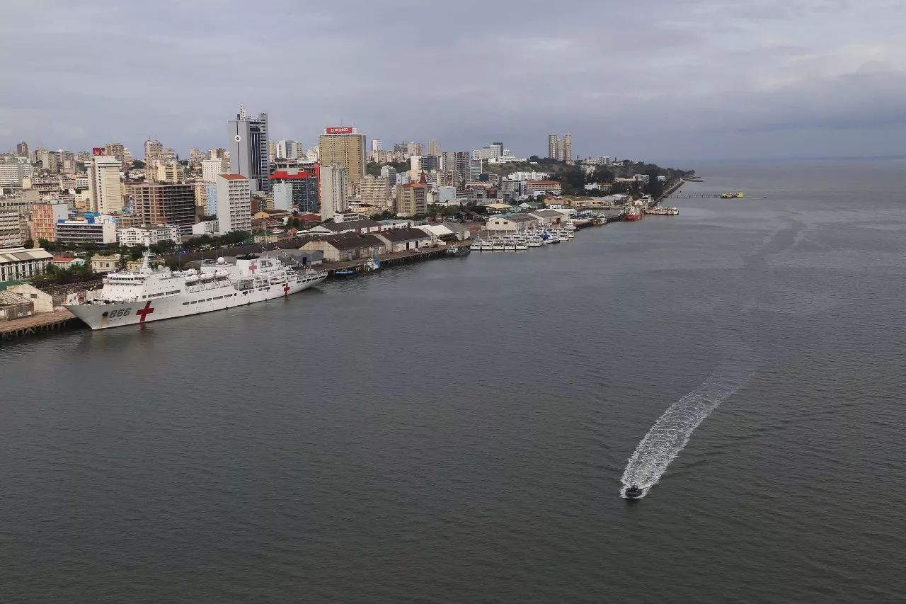 ▲11月11日,从马普托大桥俯瞰停靠在马普托港的和平方舟医院船