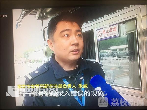 南京市车管所新车注册负责人朱威:“昨天反映的这辆车是2012年注册的,注册的时候我们也确实存在着有一些号码是录入错误的现象。现在对于所有车主的信息,一个是录入电子档案系统,第二在车主选号前,我们会把录入的系统通过屏幕反映出来给群众看,群众再次核实自己的手机号码无误之后才进入选号的下一步。”