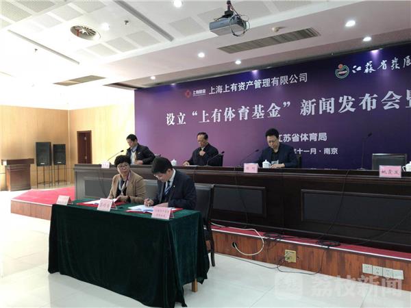 发布会上,省发展体育基金会陈小君秘书长和姚霞发董事长签订捐赠协议,上海上有资产管理有限公司将连续4年,每年向省发展体育基金会捐赠500万元人民币和200万元实物,设立“上有体育基金”,专项用于支持江苏省内大型体育赛事、江苏省运动队和体育公益项目,支持江苏体育公益事业。