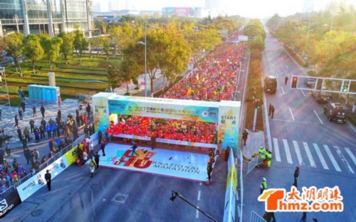 11月19日,今天上午7:30,由中国田径协会和无锡市滨湖区人民政府主办,无锡市滨湖区文体局和汇跑赛事联合承办的2017比佛利环蠡湖国际半程马拉松鸣枪开跑。
