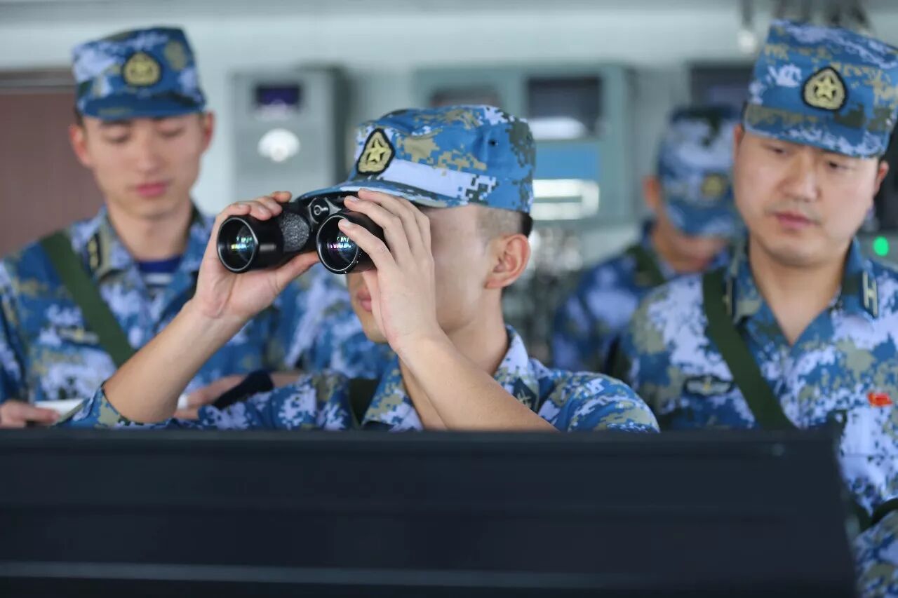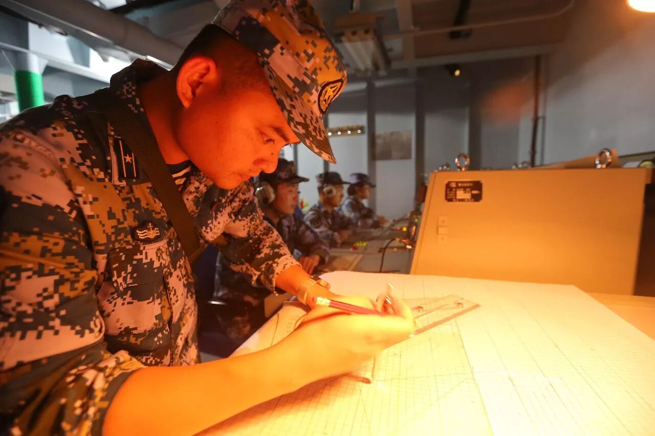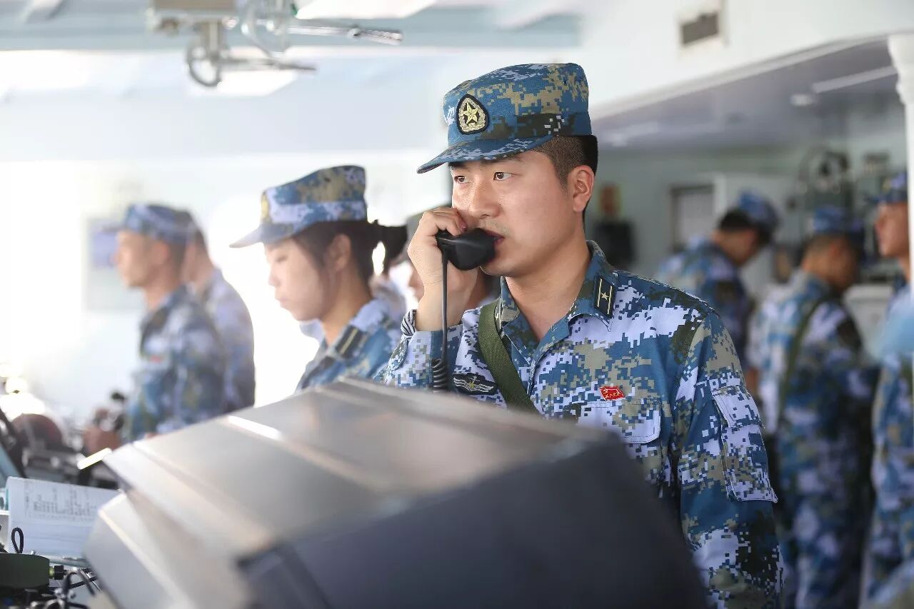 指挥舰厦门舰上,海军考核组通报:前方发现浮雷!株洲舰、昆山舰等4艘舰艇立即抢占有利阵位,依次射击。